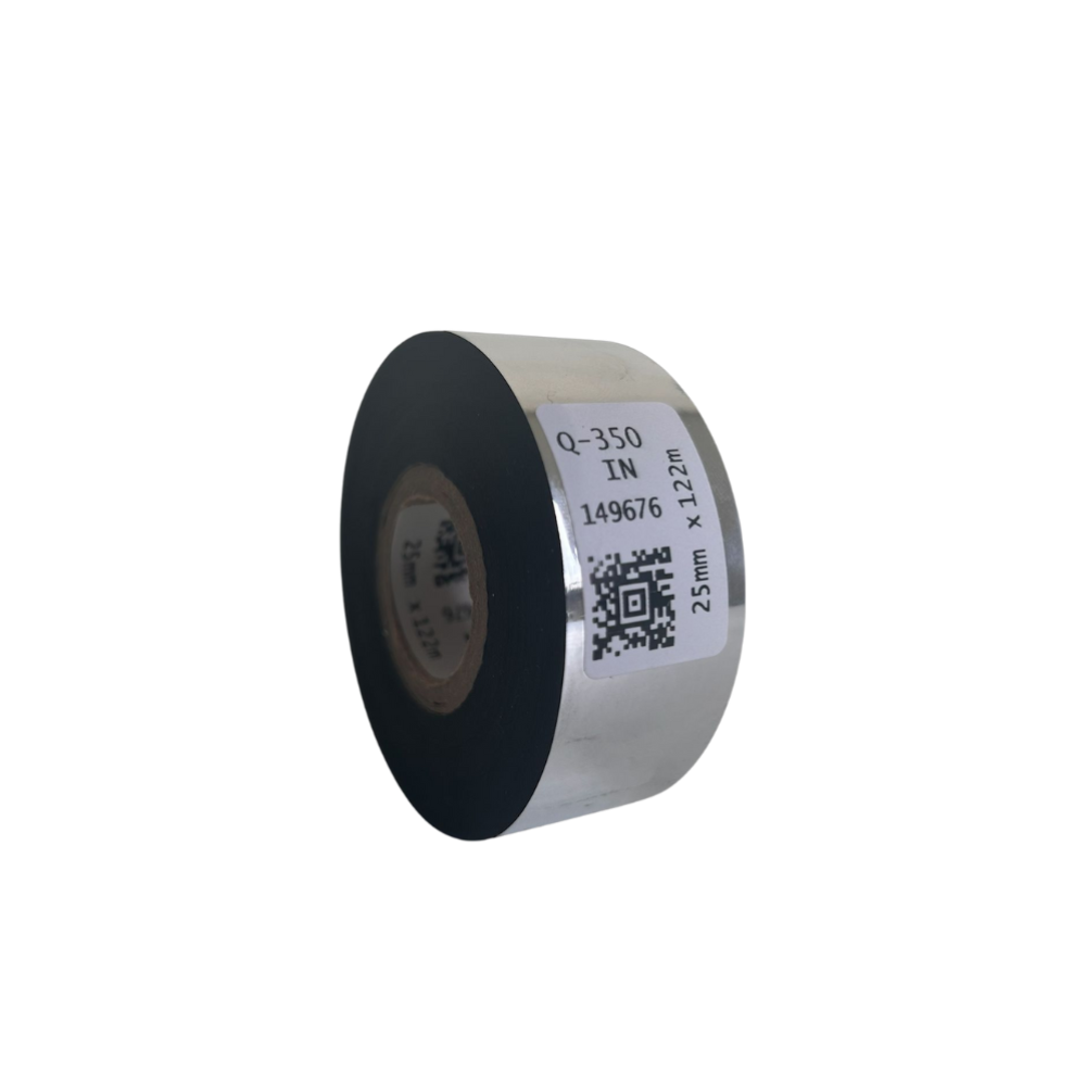 Das schwarze Heißprägeband Q-350 ist zur direkten Kennzeichnung von Informationen wie Herstellungsdatum, Chargennummer, Mindesthaltbarkeitsdatum oder Produktgewicht auf Verpackungen bestimmt – unter Verwendung von Geräten wie Nummeriermaschinen oder Datumsprägern.