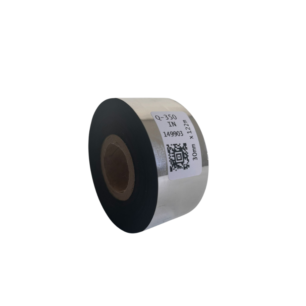 Das schwarze Heißprägeband Q-350 ist zur direkten Kennzeichnung von Informationen wie Herstellungsdatum, Chargennummer, Mindesthaltbarkeitsdatum oder Produktgewicht auf Verpackungen bestimmt – unter Verwendung von Geräten wie Nummeriermaschinen oder Datumsprägern.